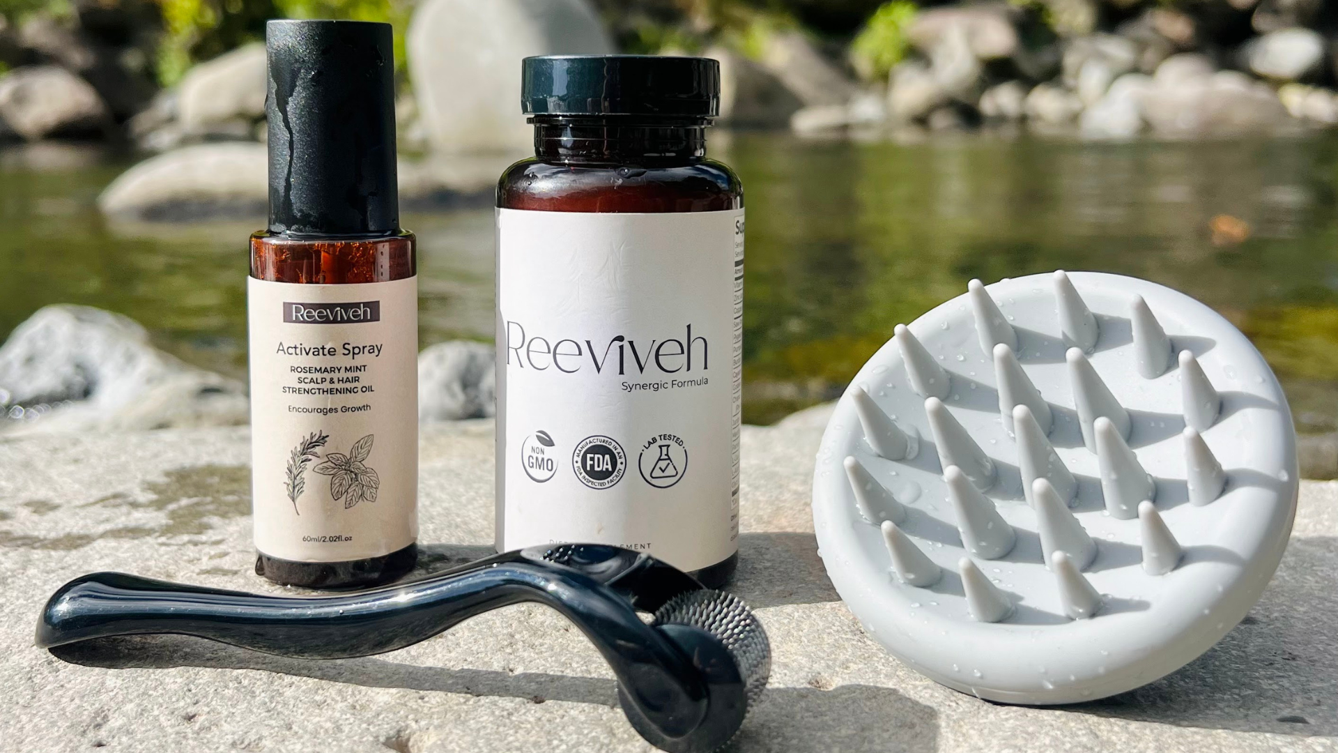 - Reeviveh Stimulate Brush & Microneedling Roller enhance scalp blood flow and product absorption.